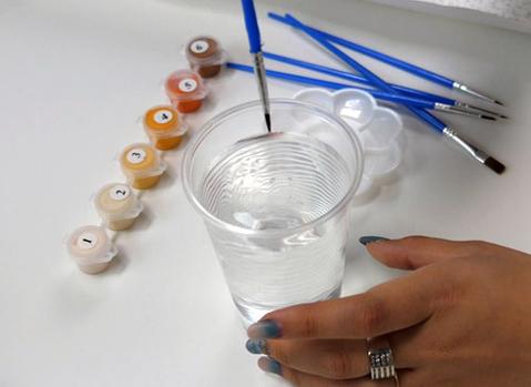 - 2 tasses d'eau (1 pour l'eau propre et 1 pour l'eau sale de la peinture)