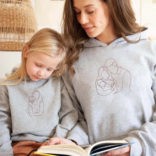 Confiez-nous la création artisanale d'un sweat à capuche unique, brodé d'un souvenir spécial.